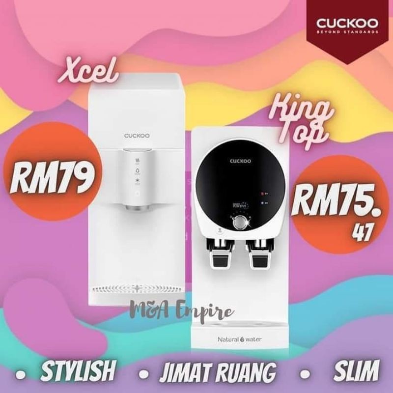 Bolehkah kita menggunakan air takungan untuk pasang Cuckoo. Model Fusion Top Cuckoo bayaran servis RM400 untuk setahun. Sistem ini dapat menyingkirkan 99 bahan kimia logam berat bakteria kuman fungal dan hanya meninggalkan kandungan mineral yang baik sahaja dalam kandungan air.